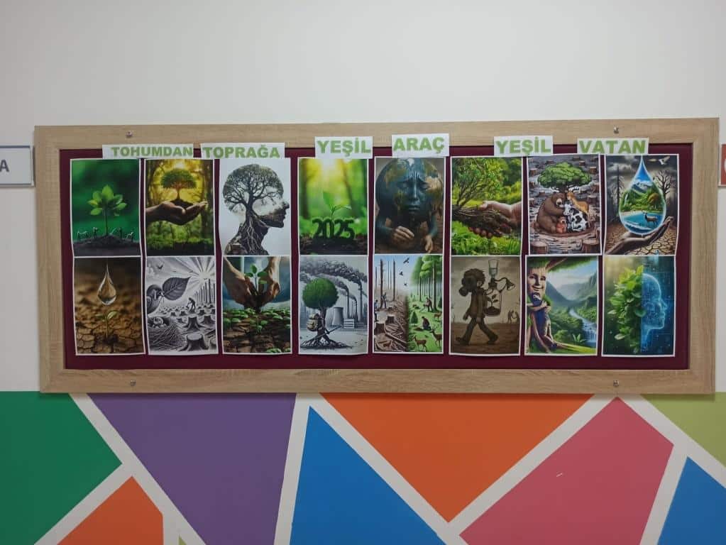 Okulumuzda çevre bilincini artırmak ve sürdürülebilir bir gelecek için farkındalık yaratmak amacıyla "Tohumdan Toprağa Yeşil Araç Yeşil Vatan" başlıklı bir eğitim verildi. Eğitim, doğa dostu uygulamaların yaygınlaştırılması ve öğrencilerin çevreye duyarlı bireyler olarak yetişmesi hedefiyle düzenlendi.